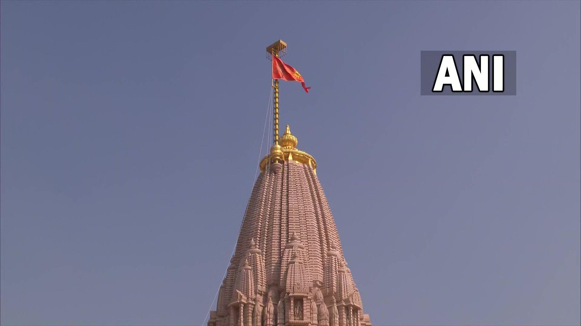 राम मंदिर के शिखर पर धर्म ध्वजारोहण की पहली तस्वीर