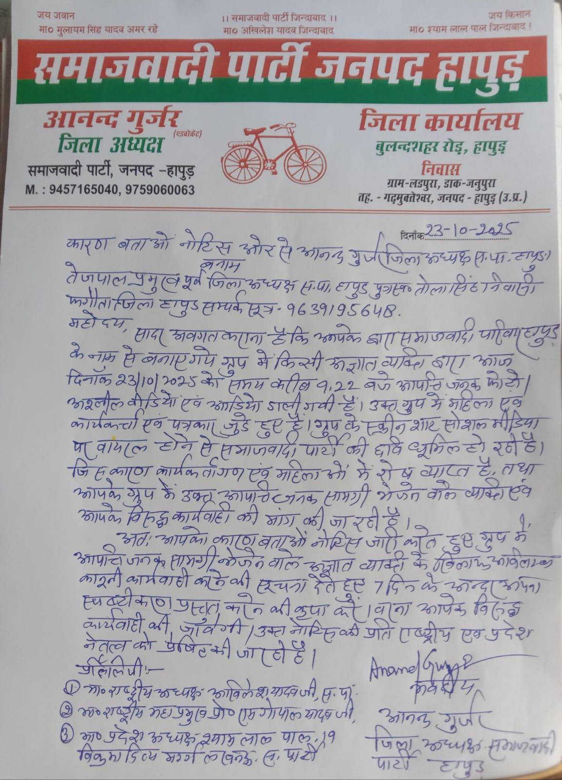 हापुड़ में सपा के वॉट्सऐप ग्रुप में अश्लील वीडियो-ऑडियो वायरल!... 'समाजवादी पार्टी परिवार' में किसने फैलाई ये गंदगी