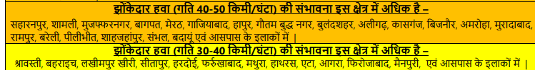 मौसम विभाग के पूर्वानुमान के मुताबिक, उत्तर प्रदेश के 30 से अधिक जिलों में 40 किलोमीटर प्रति घंटा की रफ्तार से झोंकेदार हवाएं चलने के आसार हैं. तेज हवाओं के साथ होने वाली यह बारिश न सिर्फ पारे को नीचे गिराएगी, बल्कि आम जनजीवन और फसलों पर भी असर डाल सकती है.