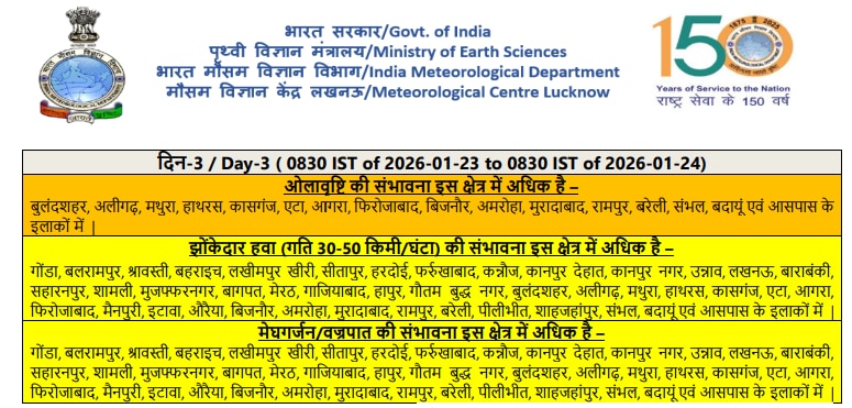 UP Weather Update: यूपी में 23 जनवरी को बारिश के साथ गिरेंगे ओले... इन जिलों में मौसम विभाग की चेतावनी जारी