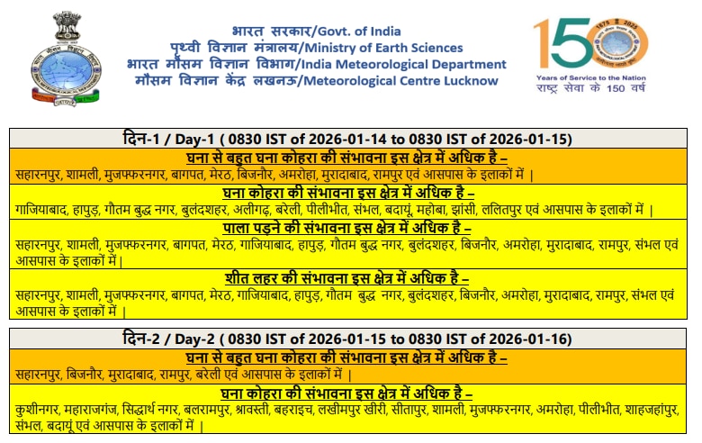 इन जिलों में 15 जनवरी की सुबह विजिबिलिटी शून्य के करीब रहने की संभावना है, जिससे सड़क, रेल और हवाई यातायात बुरी तरह प्रभावित हो सकता है: