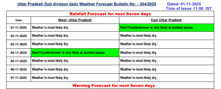 UP Weather Update: मौसम विभाग ने एक लेटेस्ट अपडेट देकर बताया है कि यूपी में अब बारिश की संभावना नहीं है. चक्रवाती सिस्टम 'मोंथा' के कमजोर पड़ने के साथ ही मौसम का मिजाज पूरी तरह बदल गया है.