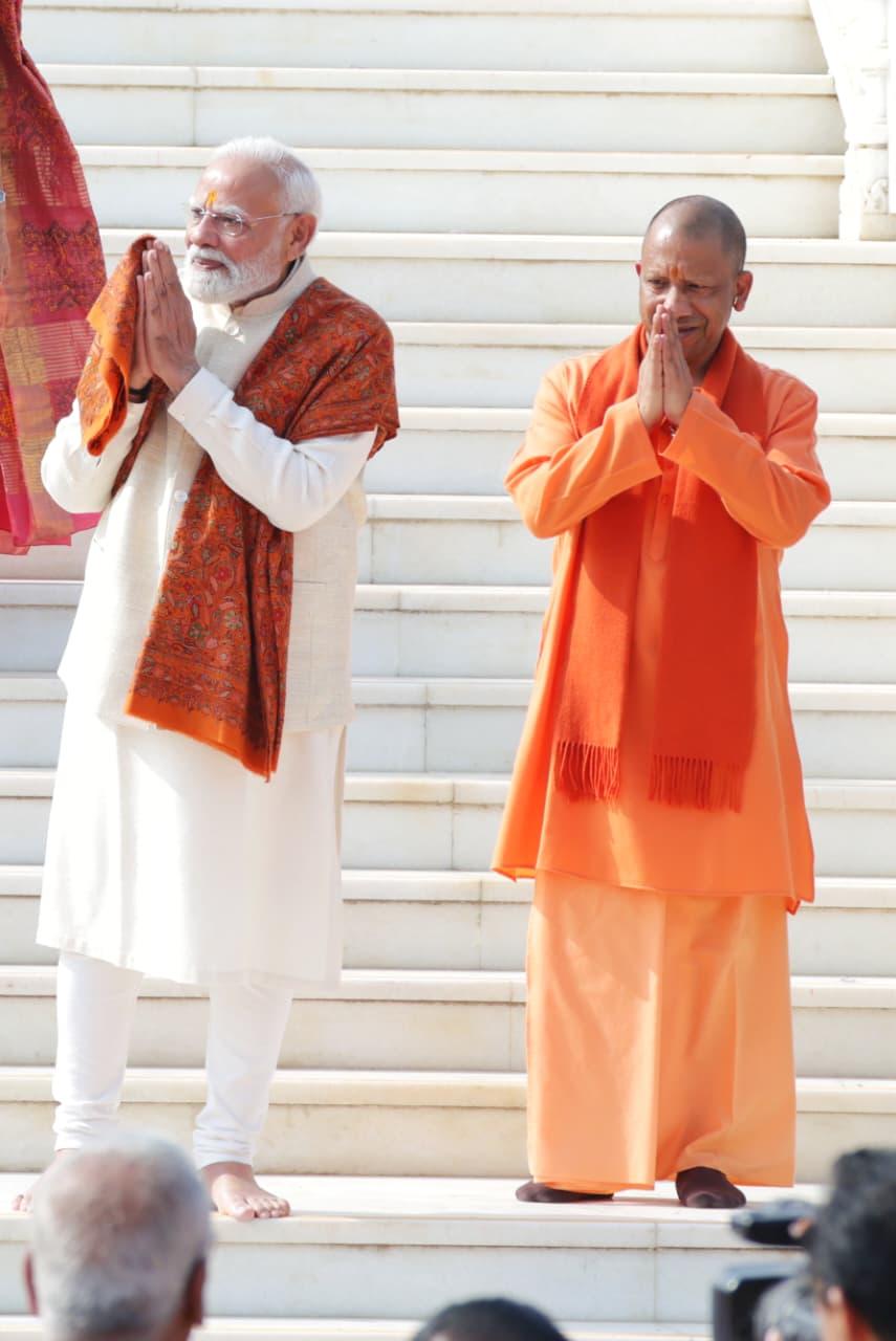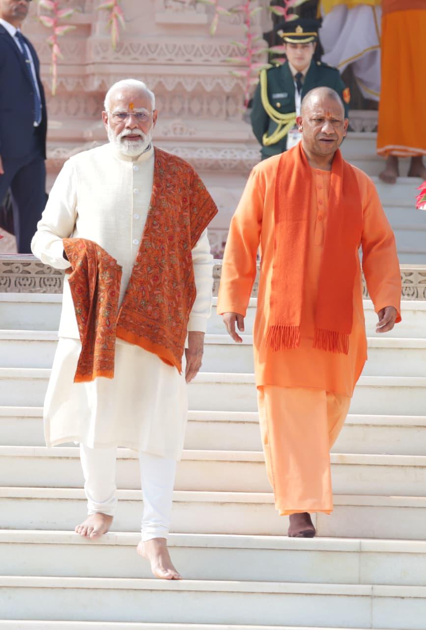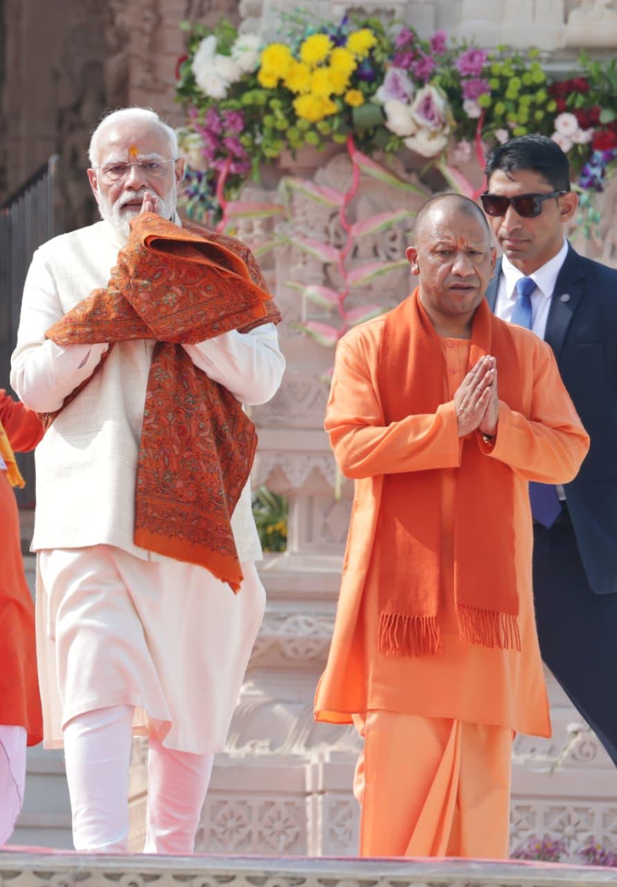प्रधानमंत्री मोदी के आगमन से पहले ही सीएम योगी ने अयोध्या का दौरा किया और सुनिश्चित किया कि मंदिर परिसर में कोई कमी न रहे. पीएम मोदी का स्वागत साकेत कॉलेज हेलिपैड पर किया गया, जिसके बाद उन्होंने भव्य रोड शो के जरिए मंदिर परिसर का रुख किया. इस दौरान सीएम योगी ने एक्स पर पोस्ट भी किया जिसमें उन्होंने लिखा कि "सप्तपुरियों में श्रेष्ठ श्री अयोध्या धाम में आदरणीय प्रधानमंत्री जी का हार्दिक स्वागत एवं अभिनंदन."