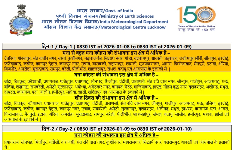 9 जनवरी को जिन चुनिंदा क्षेत्रों में कोहरे की संभावना अधिक है, वो ये हैं: