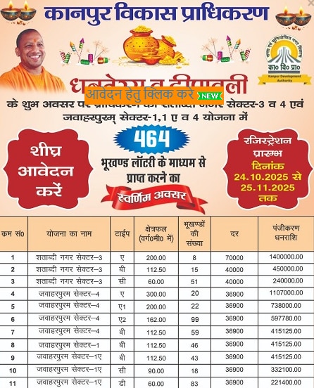 कानपुर में KDA इन 2 योजनाओं में बेचेगा 464 प्लॉट्स... ये है उनका रेट और साइज