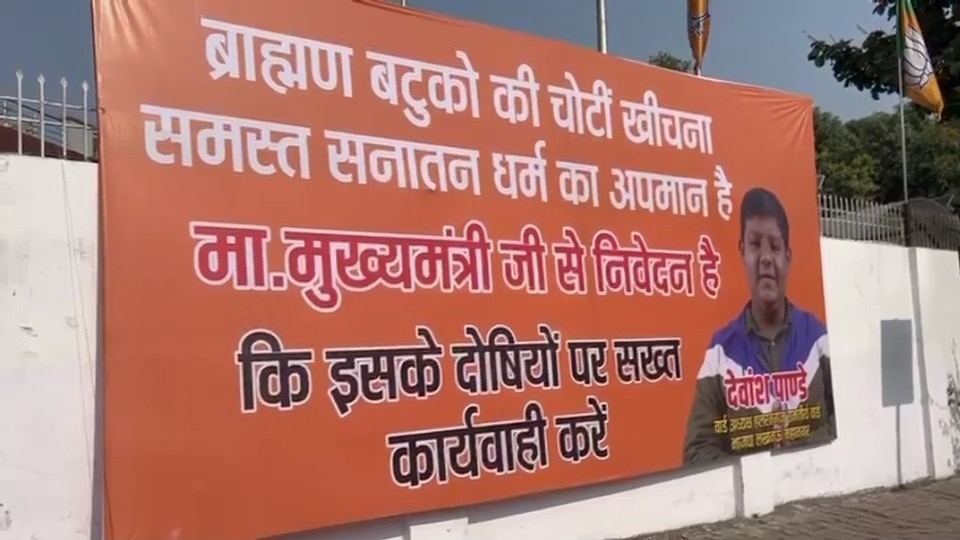 ब्राह्मण बटुकों की चोटी खींचना सनातन का अपमान... भाजपा नेता ने पार्टी ऑफिस के बाहर लगाए पोस्टर, ये क्या होने लगा?